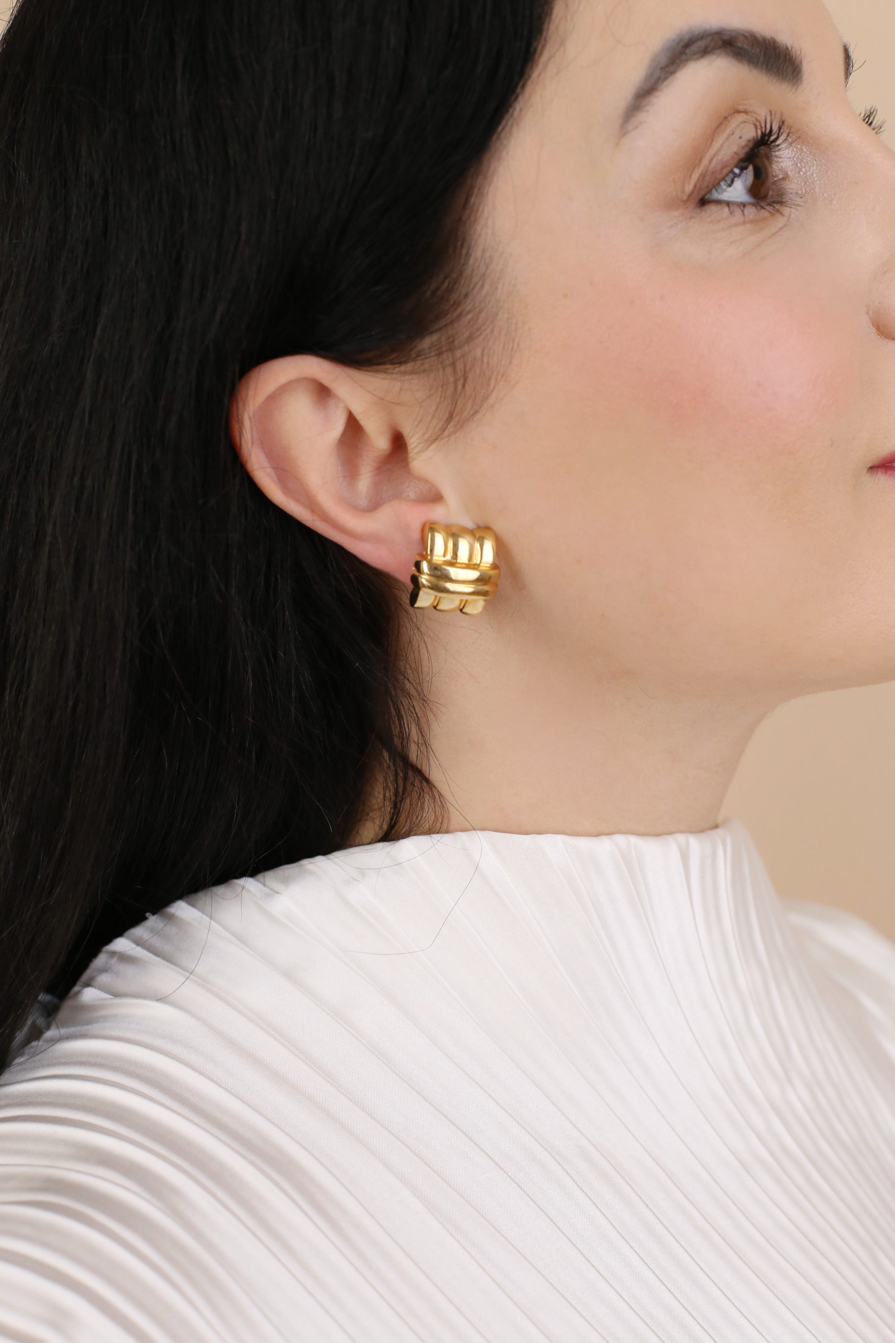 Giselle ist klein, aber oho – ein eleganter Vintage-Klassiker mit skulpturaler Anmutung. Diese Clip-Ohrringe bestechen durch ihr kompaktes, knotenartiges Design in poliertem Goldton und eignen sich perfekt für jeden Tag und lassen sich mühelos mit anderem Schmuck kombinieren. Klassisch, minimalistisch und zeitlos.