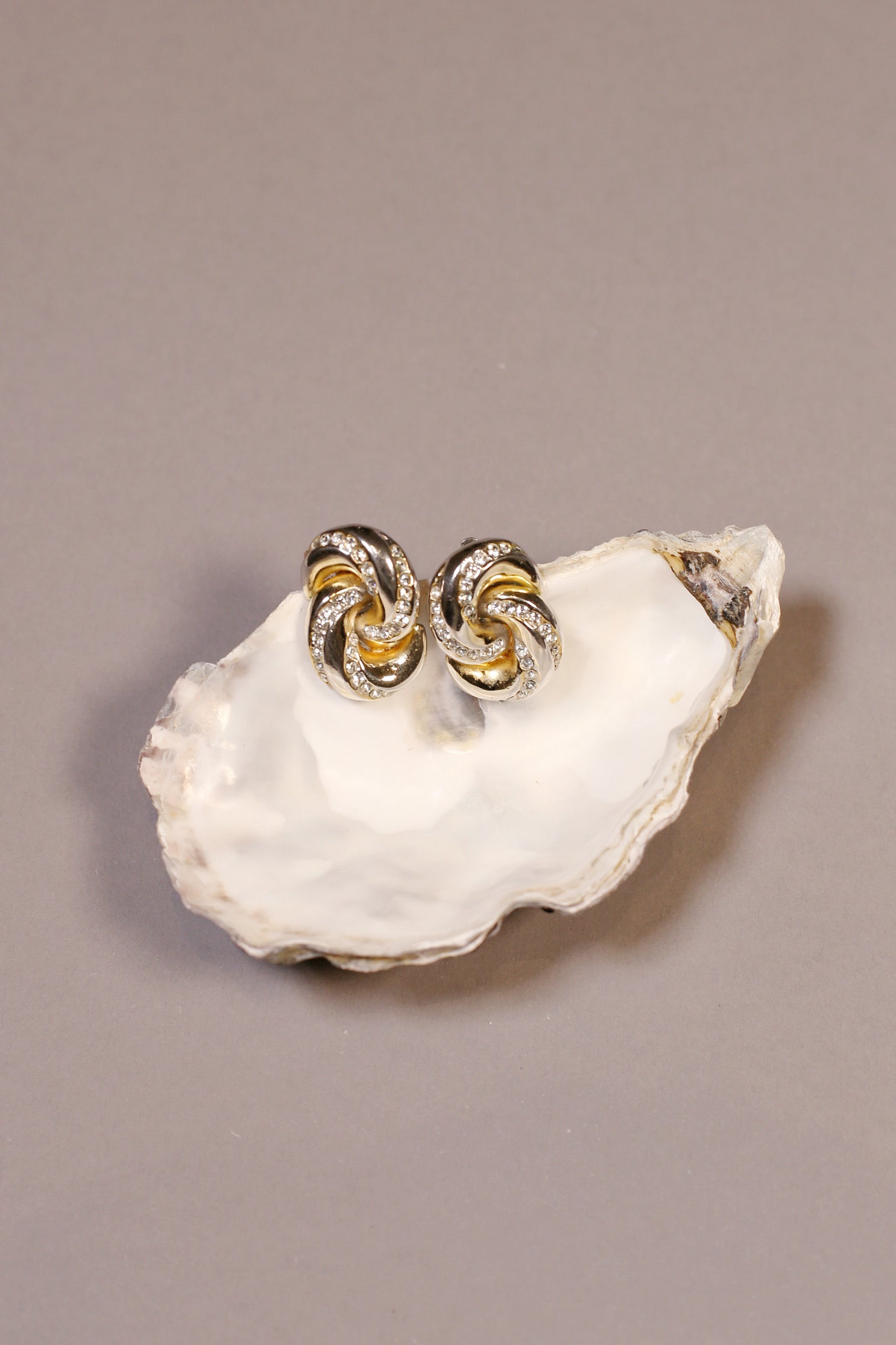 Comtesse du Cèdre ist ein zeitloses Paar Vintage-Ohrringe in einem eleganten Two-Tone-Finish – Gold und Silber – geformt zu einer skulpturalen Knotensilhouette und akzentuiert mit pavé-gefassten, klaren Steinen. Klassisch und zugleich besonders: Sie fangen das Licht wunderschön ein und verleihen jedem Look sofort ein poliertes Finish – von Everyday Tailoring bis zur Eveningwear.