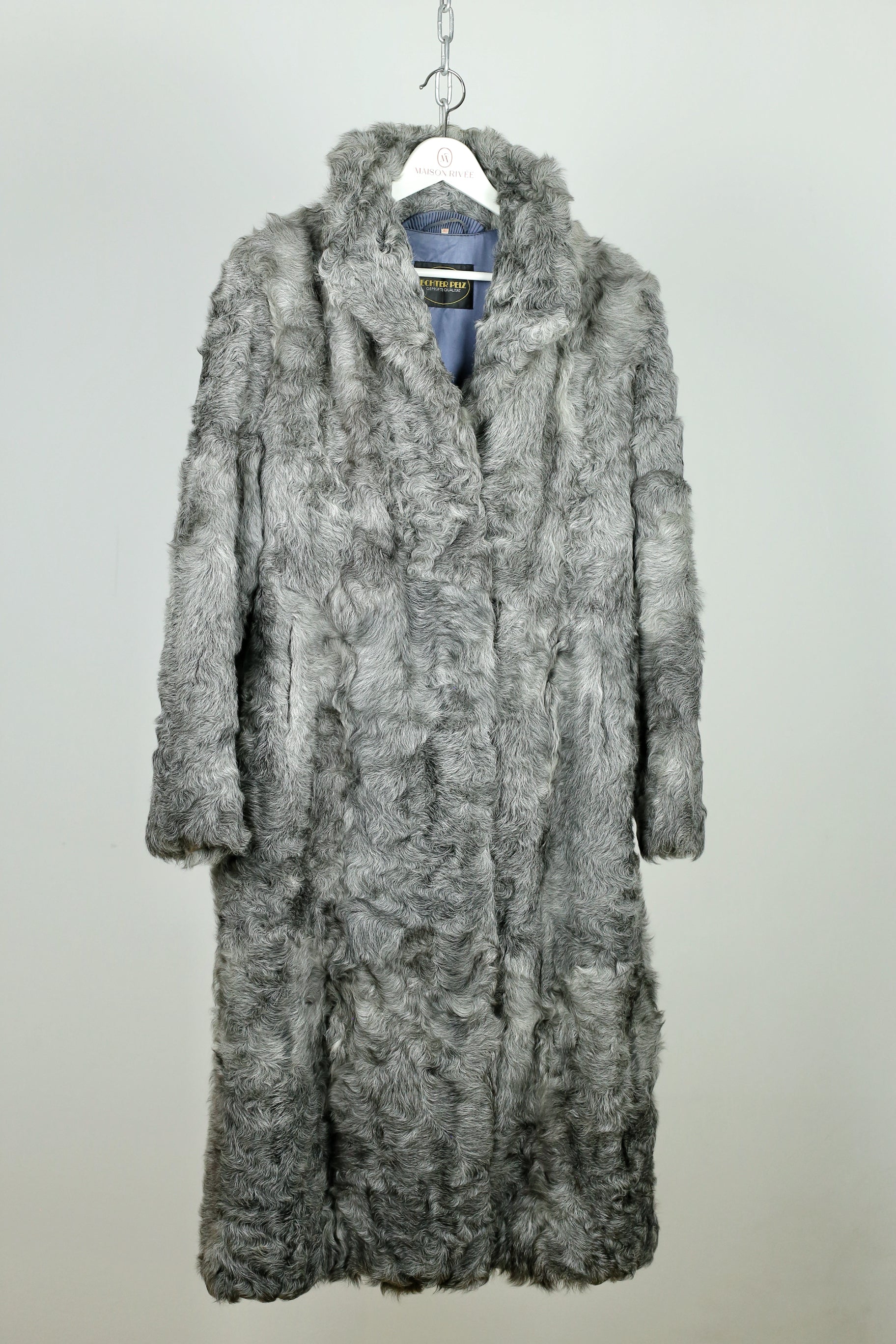 The coat is in near-new condition and has been worn very little, preserving its impeccable shape and velvety softness. The characteristic natural patterning adds depth and movement, creating a sculptural, artisanal appearance. Light yet warm, ANTEA offers the perfect balance between elegance and practicality.