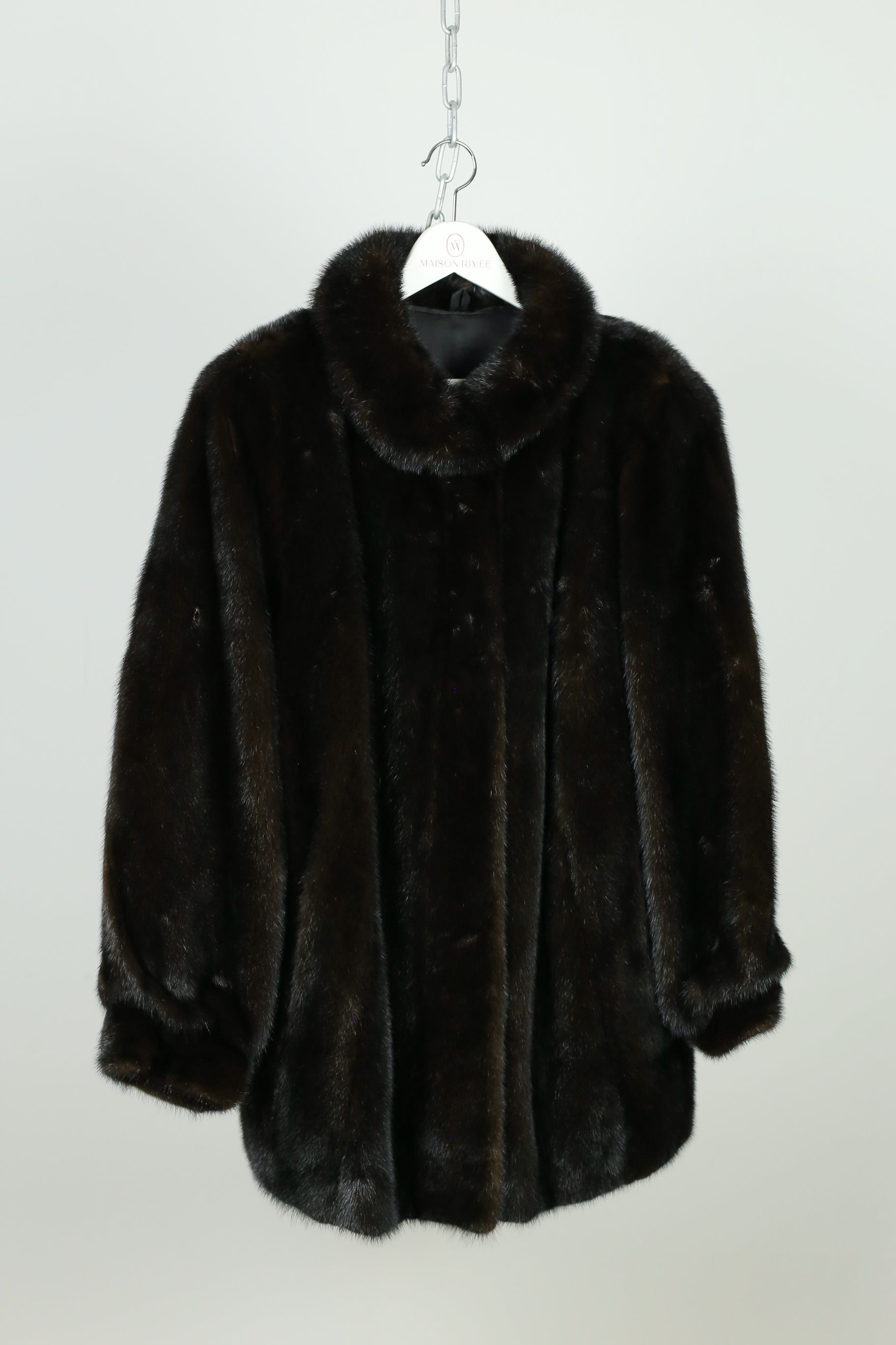 This piece is in near-perfect condition, preserved so beautifully it looks almost new. The fur is dense, silky, and radiant, reflecting light with a subtle sheen that only high-quality mink can achieve. Its more extended cut adds refinement and warmth, making it a winter essential for those who appreciate enduring elegance.