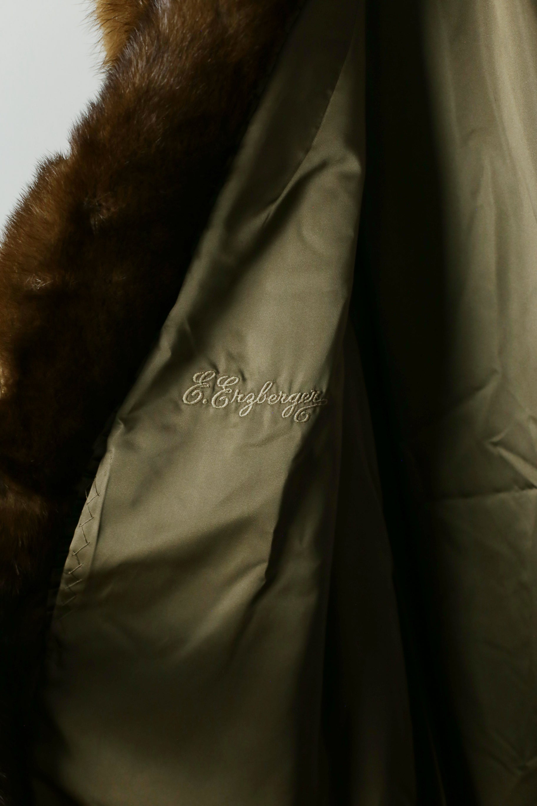 The silhouette is classic yet flattering, fitting sizes M–L with comfortable ease. Its timeless stand-up collar, elegant cuffs, and a single statement button add understated sophistication. Fully lined in premium satin featuring the original monogram E. Erzberger, this coat carries the charm and craftsmanship of a bygone era.A rare find for collectors and lovers of heritage luxury.