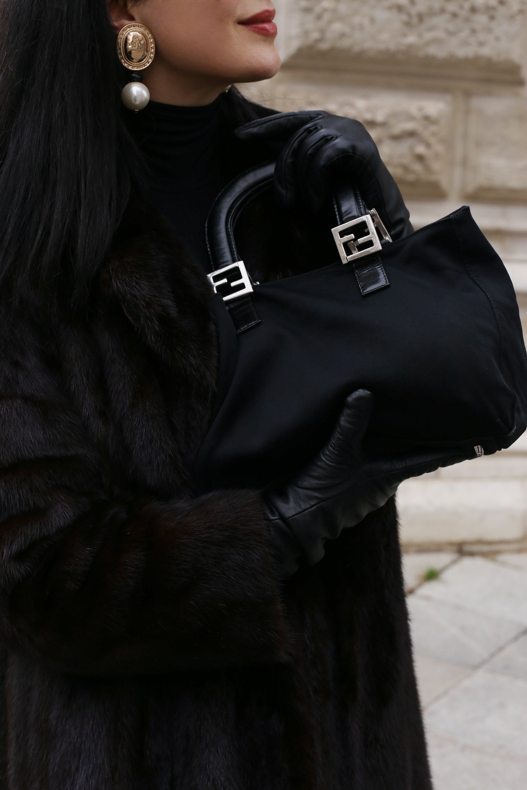 A beautifully understated vintage Fendi piece, crafted in soft black nylon with smooth leather handles that give it structure without taking away its relaxed silhouette. This handbag captures the effortless sophistication of early-2000s Fendi — minimal, modern, and intuitively chic.