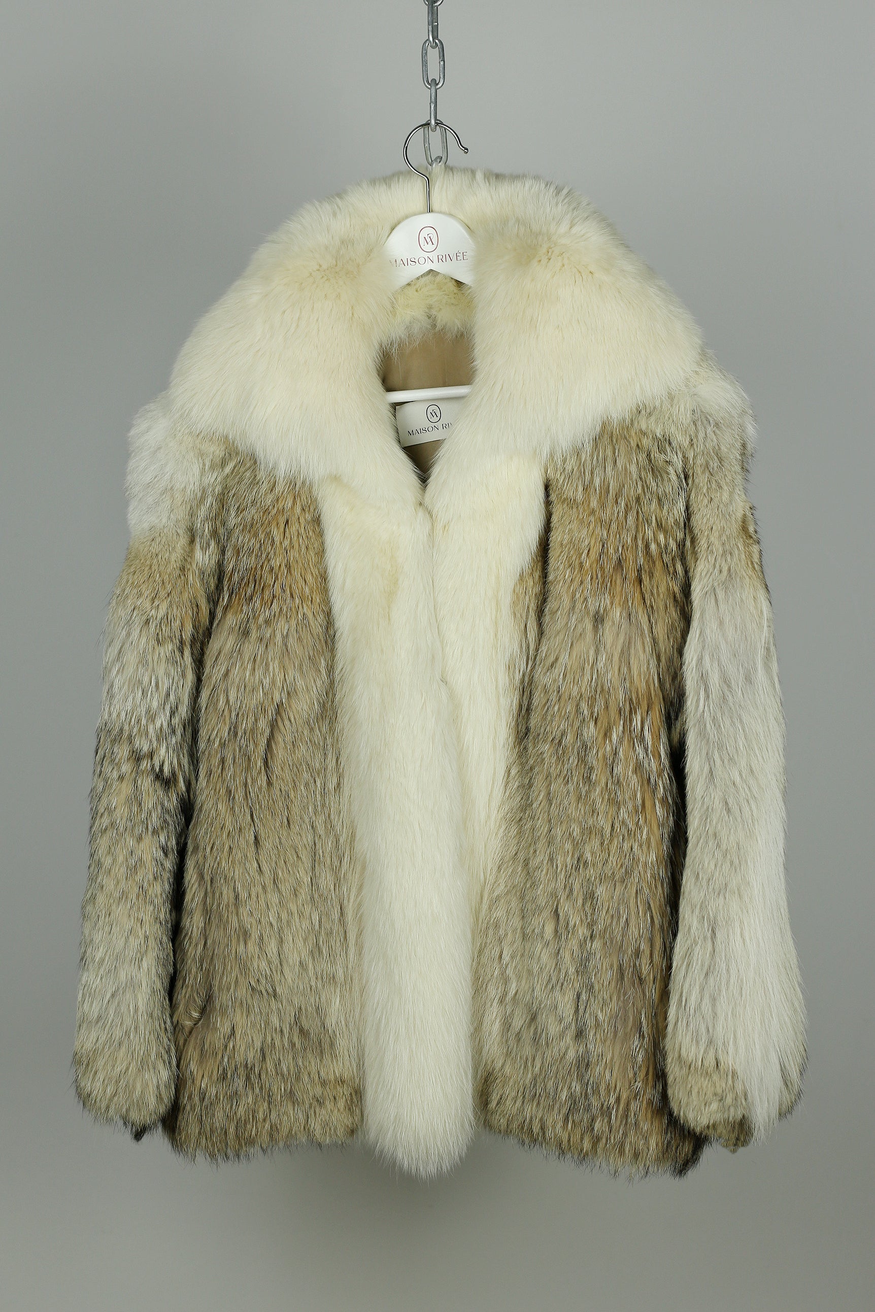 Meet Anouk — a rare vintage gold jackal fur jacket, radiant in tone and unmistakably refined in presence. Her golden hues shift gently between honey and sand, catching the light with quiet confidence.